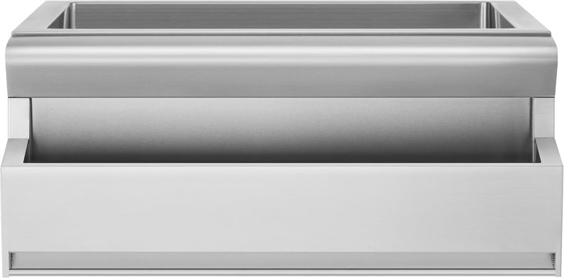 The DCS beverage chiller accessory features a removable, easy-clean base pan, as well as a discreet under-bar outdoor towel holder.