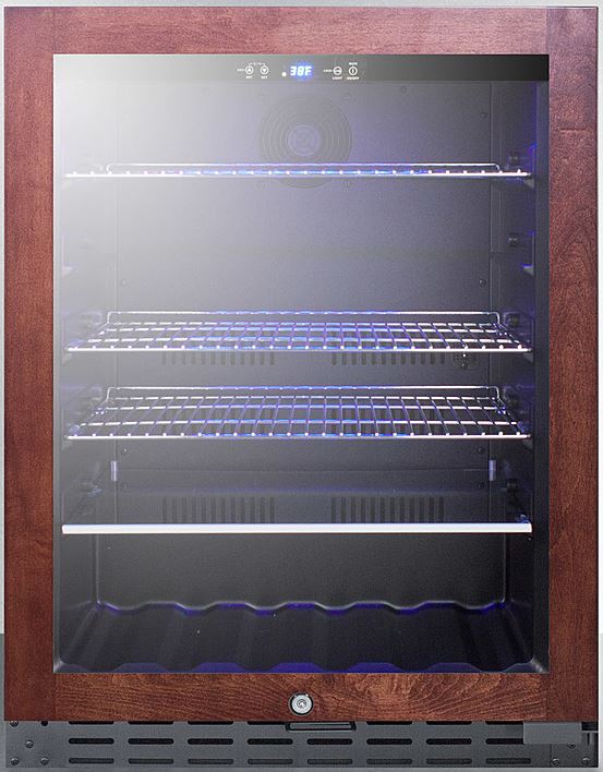 The ALBV2466PNR is ETL-S listed to NSF-7 commercial standards and also meets residential standards. The front-breathing design allows built-in installation, while the fully finished black cabinet also enables freestanding use. Sized just under 32 inches high and 24 inches wide, this unit makes an ideal fit under lower ADA compliant counters.The double pane tempered glass door features a seamless stainless steel trim designed to accept overlay panels, allowing you to match the refrigerator to your own cabinetry. Users provide their own handle to complete the custom look. A temperature alarm provides added security should the temperature go beyond the setpoint. The optional Sabbath Mode can be used to disable certain electrical features during periods of religious observance. The automatic defrost system keeps the unit running efficiently with little user maintenance.